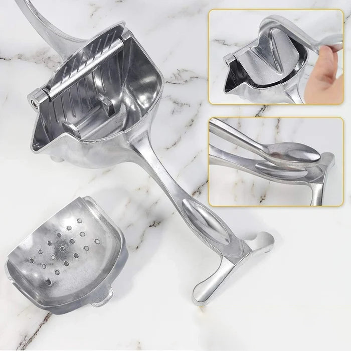 Este espremedor adiciona eficiência ao processo de suco, resultando em uma alavancagem superior projetada para maximizar a produção de suco. Adequado para maçãs, laranjas, limões, limas, etc. A ferramenta comprime todos eles para efeito máximo. Uma ferramenta essencial para qualquer cozinha ou bar, perfeita para saladas, peixes, bebidas e outras necessidades culinárias.